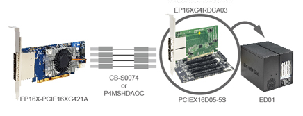 PCIEX16D05-5S is PCIe x16 to four PCIe x16 (x4 mode) Slots Expansion Docking Board. The PCIe Gen 5 slots are backward compatible and support PCIe Gen 5/4/3/2 add-in card, Target Cable Adapter, and DPU (Super NIC). It supports the following applications.