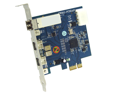 3-port OHCI 1.2 Compliant IEEE 1394b (Firewire 800) & GOF (LC-Duplex) to PCI Express x1 Host Card featuring Ti XIO2213B Host Controller