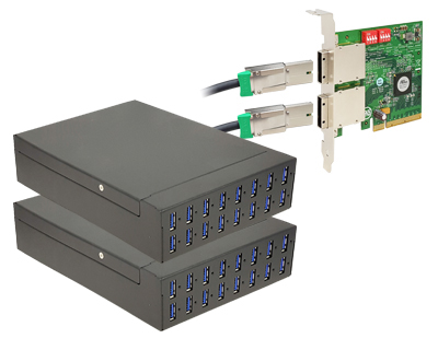Octad channel 32-port (4-port x 8) USB 3.0 to External PCI Express x8 Gen 2 Host Docking
