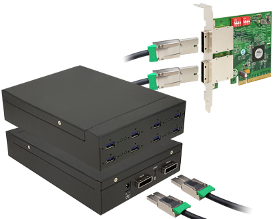 Octad channel 8-port (1-port x 8) USB 3.0 to External PCI Express x8 Gen 2 Host Docking