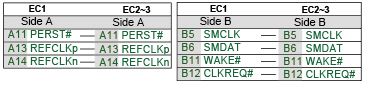 PCIe x16 Edge Connector (EC1 & EC2, EC3) Transmitter Differential Pair Pins and Receiver Differential Pair Pins Wiring Diagram PCIe x16 Edge Connector (EC1 & EC2, EC3) Auxiliary Signals Pins Wiring Diagram