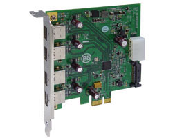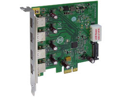 The U3-PCIE1XG211 is USB 3.0 to PCI Express x1 Gen 2 host card. It fully integrates an Extensible host Controller Interface (xHCI) engine, a 4-port 5Gbps USB 3.0 transceiver, a PCI Express endpoint controller and a 5Gbps PCI Express transceiver. U3-PCIE1XG211 implements the Universal Serial Bus 3.0 Specification Revision 1.0 and the Extensible Host Controller Interface (xHCI) Specification Revision 1.0, and complies with the PCI Express Rev 2.1 Specification at 5Gbps data rate, and the PCI Local Bus Specification Revision 2.2. U3-PCIE1XG211 is backward compatible for operation with USB 2.0 and USB 1.1 devices. The U3-PCIE1XG211 features GoXtream™ xHCI Accelerator Engine, which maps the xHCI standard directly into a set of parallel functional units, providing acceleration of all xHCI operations while maintaining compatibility with existing software driver models. U3-PCIE1XG211 supports the following Battery Charging Protocols.