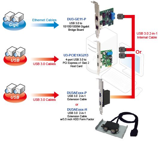 The U3-PCIE1XG213 is USB 3.0 to PCI Express x1 Gen 2 host card. It fully integrates an Extensible host Controller Interface (xHCI) engine, a 4-port 5Gbps USB 3.0 transceiver, a PCI Express endpoint controller and a 5Gbps PCI Express transceiver. U3-PCIE1XG213 implements the Universal Serial Bus 3.0 Specification Revision 1.0 and the Extensible Host Controller Interface (xHCI) Specification Revision 1.0, and complies with the PCI Express Rev 2.1 Specification at 5Gbps data rate, and the PCI Local Bus Specification Revision 2.2. U3-PCIE1XG213 is backward compatible for operation with USB 2.0 and USB 1.1 devices.