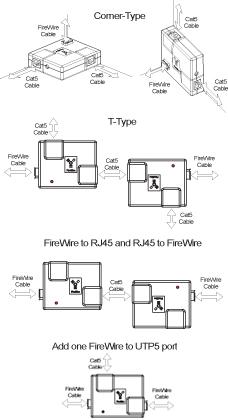 One FireWire (6pin) to one RJ45 port |