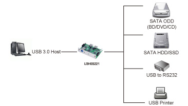 - Two downstream USB 3.0 ports which integrated two SATA Bridges