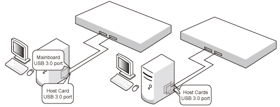 1-2. Multiple Channel USB 3.0 Host Card (U3X4-PCIE4XE101) or USB 3.1 Host Card ( U3-PCIE2XG221) To have higher throughput you will have to use U3X4-PCIE4XE101 Application 2 : For Two Computers