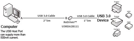 U3RDA2B111 is an USB 3.0 Redriver, extending your USB 3.0 signals an additional 2~5 meters. It's easy to setup and there is no configuration necessary, like all USB compliant hardware. The device requires no external power sources and low power consumption. |