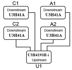 The upstream USB 3.0 4-Port Hub (U3H419SH) allows for a maximum data transfer rate of up to 5Gbps, or ten times the throughput available to USB 2.0 based devices. Other enhancements provide for improved interaction between device and host controller, including important advancements in power management. U3-16U3BC02 provides simultaneous SuperSpeed USB and High-Speed/Full-Speed connections on the upstream port and provides SuperSpeed (5Gbps) USB, High-Speed (480Mbps), Full-Speed (12Mbps), or Low-Speed (1.5Mbps) connections on the downstream ports. When the upstream port is connected to an electrical environment that only supports High-speed or Full-speed/Low-speed connections, SuperSpeed USB connectivity is disabled on the downstream ports. When the upstream port is connected to an electrical environment that only supports Full-speed/Low-speed connections, SuperSpeed USB and High-speed connectivity are disabled on the downstream ports. |